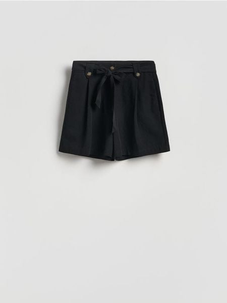 Szorty o swobodnym kroju, wykonane z tkaniny z dodatkiem lnu.