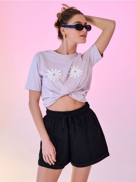 Sinsay – Bawełniane szorty z przeszyciami – czarny –