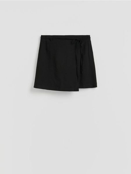 Spódnico-szorty o trapezowym kroju, wykonane z tkaniny z wiskozą.