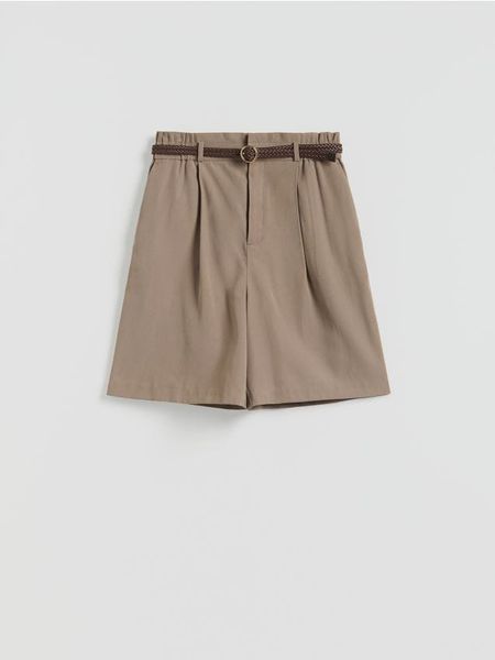 Szorty o prostym kroju, wykonane z tkaniny z wiskozą.
