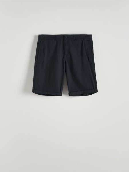 Szorty o regularnym kroju, wykonane z bawełnianej tkaniny.