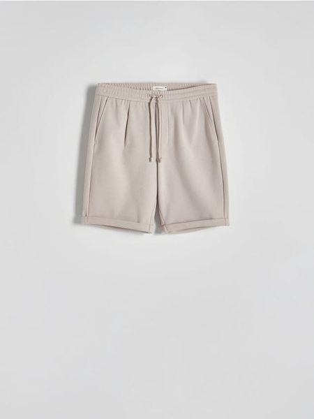 Szorty o regularnym kroju wykonane z dzianiny z bawełną.