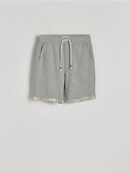 Szorty o regularnym kroju, wykonane ze strukturalnej dzianiny.