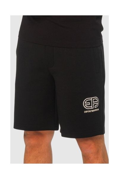EMPORIO ARMANI Czarne męskie bawełniane szorty z wyszywanym logo, Rozmiar S