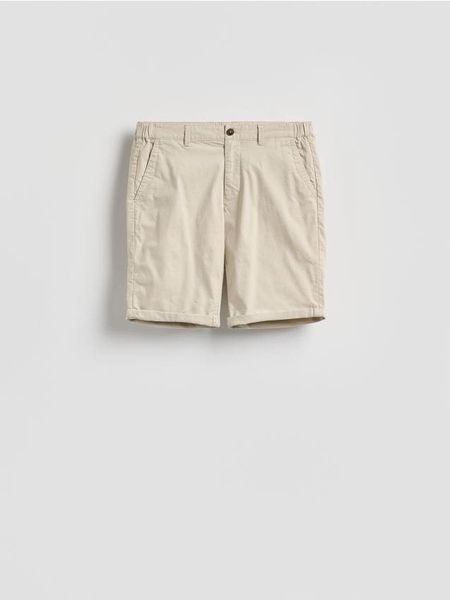 Szorty typu chino, wykonane z bawełny.