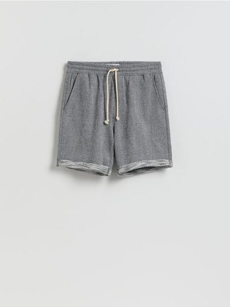 Szorty o prostym kroju, wykonane z dzianiny z bawełną.
