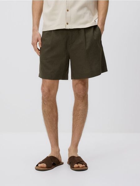 Szorty o regularnym kroju, wykonane z bawełny i lnu.