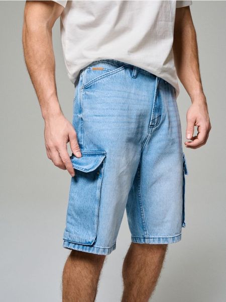 Sinsay – Luźne szorty cargo z efektem sprania – niebieski –