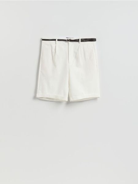 Szorty regular fit z paskiem – złamana biel