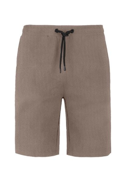 Ciemnobeżowe Klasyczne Szorty z Gumką w Pasie Ściągane Troczkiem od Środka Piofina
