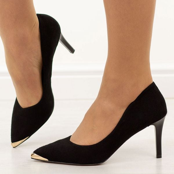 Czarne zamszowe skórzane Polskie szpilki damskie Prestige 2241