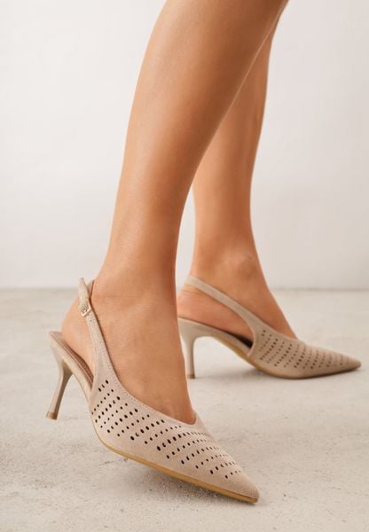 Beżowe Szpilki Slingback z Ażurową Cholewką Nessnore