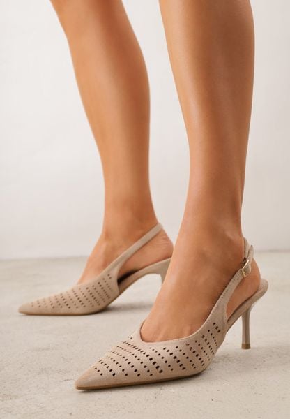 Beżowe Ażurowe Szpilki z Odkrytą Cholewką Chasianna