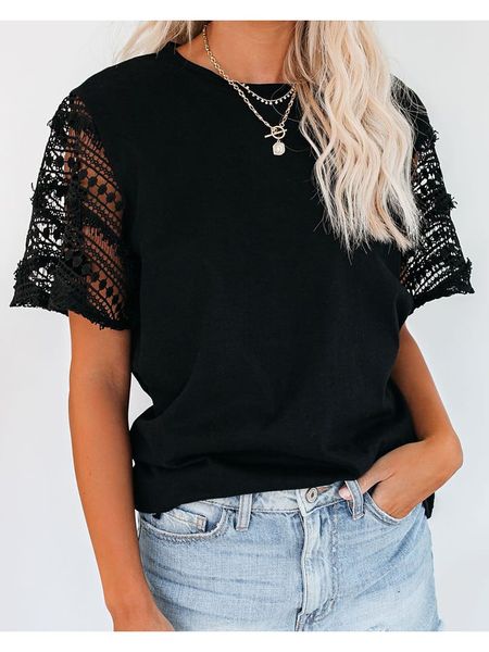 Czarna Bawełniana Sukienka T-shirt z Rozcięciami i Koronkowymi Rękawami Fenisia