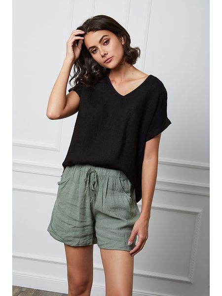– czysty len- dekolt: V- zakończenie rękawa: podwijane- krój: prosty- look: jednokolorowy