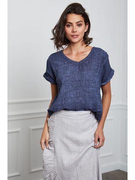– czysty len- dekolt: V- zakończenie rękawa: podwijane- krój: prosty- look: jednokolorowy