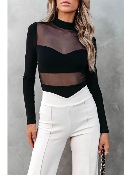 – kołnierz: golf- zapięcie: suwak na plecach- krój: wąski- look: jednokolorowy- wykończenie: delikatnie prześwitująceUwaga: Podczas wybierania odpowiedniego rozmiaru należy kierować się tabelą, widoczną na ostatnim zdjęciu.