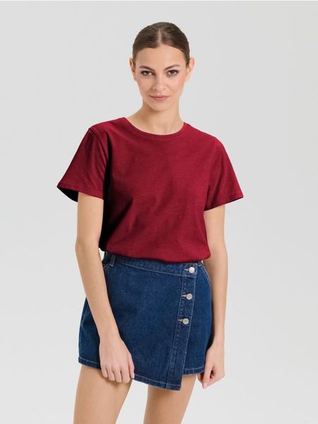 Sinsay – Bawełniana koszulka basic – bordowy –