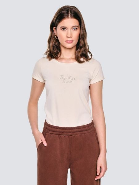 Koszulka damska z napisem z cyrkonii kremowa Malvina 103
