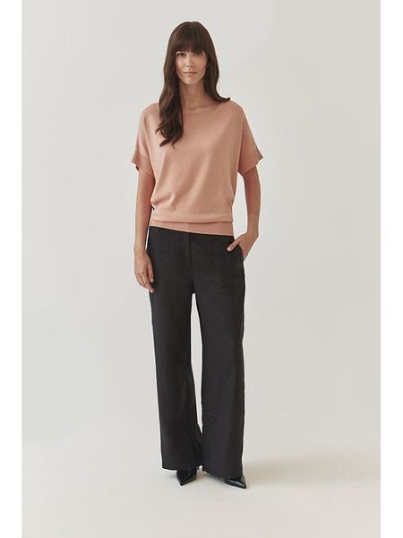 – dekolt: okrągły- krój rękawów: nietoperz- ściągacz: zakończenia rękawów, dolny brzeg- krój: prosty- look: jednokolorowy