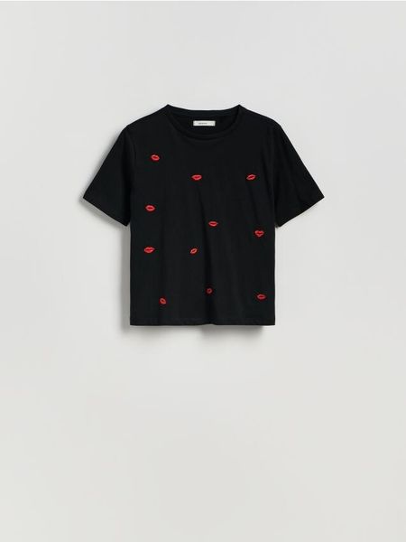 kobieta reserved t-shirty damskie ze sklepu reserved t-shirty damskie reserved t-shirty damskie bez kołnierzyka czarne t-shirty damskie kobieta reserved