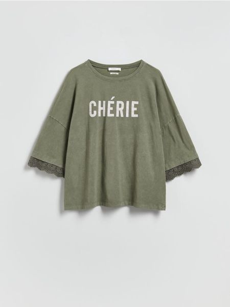 T-shirt o swobodnym kroju, wykonany z bawełnianej dzianiny.