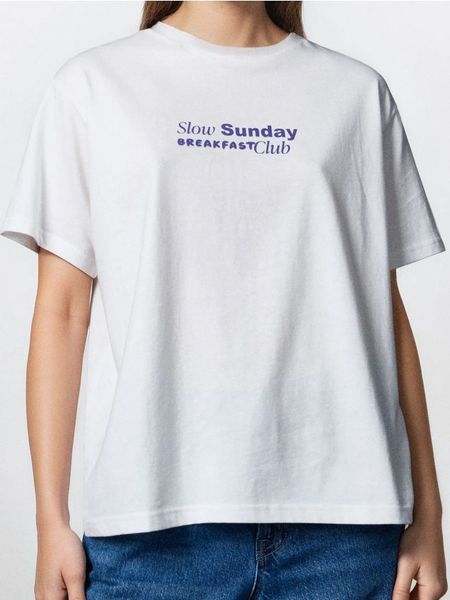 Sinsay – Bawełniana koszulka z nadrukiem na plecach – kremowy –