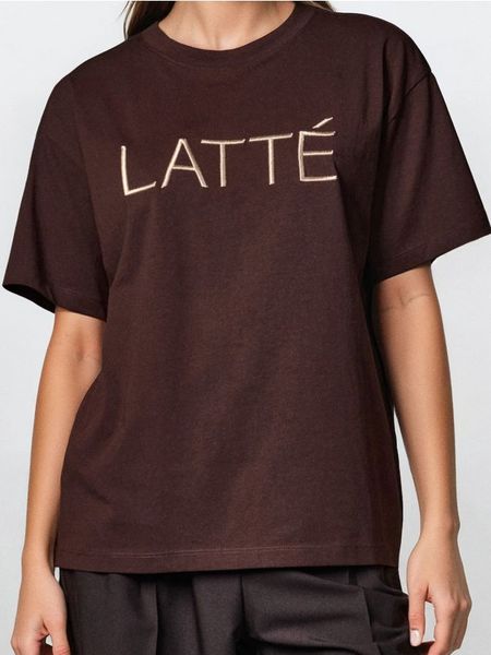 Bawełniana koszulka z haftowanym napisem – brązowy