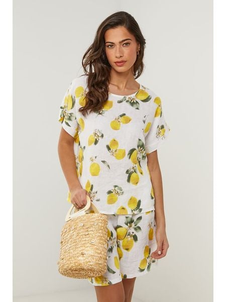 Le Monde du Lin Lniana koszulka w kolorze biało-żółtym rozmiar: 40/42
