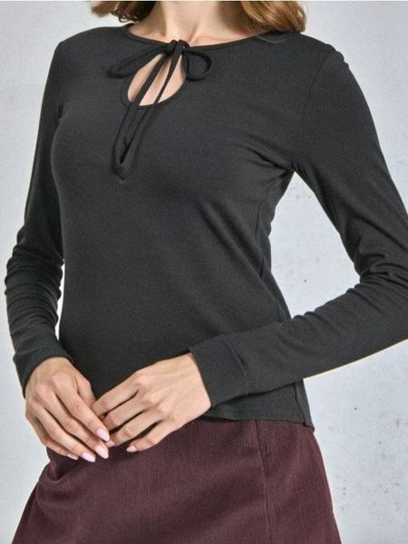 Koszulka z długimi rękawami z ozdobnym wiązaniem – czarny