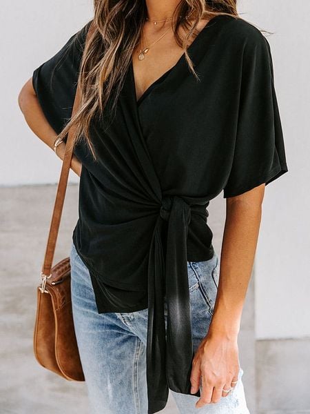 – dekolt: V- zapięcie: wiązane tasiemki- krój rękawów: nietoperz- krój: prosty- detale: ozdobny supełek- look: koperta, jednokolorowyUwaga: Przy wyborze właściwego wariantu zaleca się korzystanie z tabeli rozmiarów.
