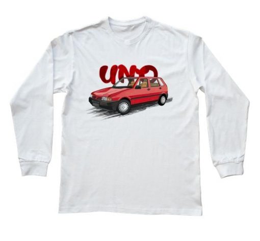 Fiat Uno — bluzka z długim rękawem (Rozmiar: XS (dorosła); Kolor koszulki: biały; Rodzaj nadruku: Fiat Uno)