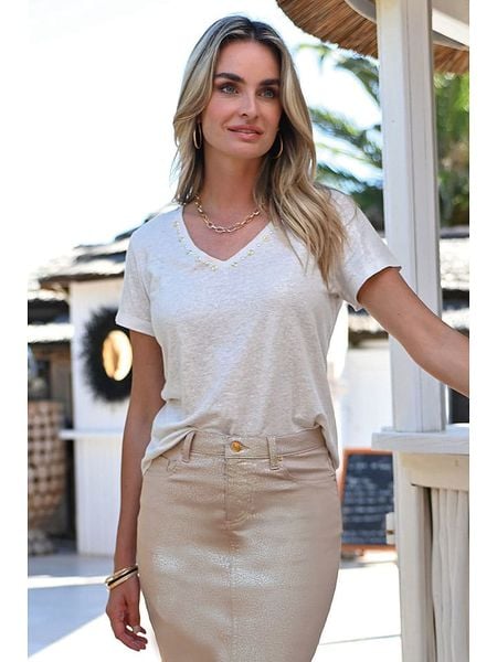 – dekolt: V- detale: ozdobne kamyczki- krój: prosty- wzór: melanżowyWskazówka: Na metkach odzieży tej marki znajdują się rozmiary francuskie. Rozmiarówka została przez nas przeliczona. Podane do wyboru warianty rozmiarów odpowiadają standardowym europejskim rozmiarom konfekcji. Prosimy zapoznać się z zamieszczonym objaśnieniem rozmiarów.