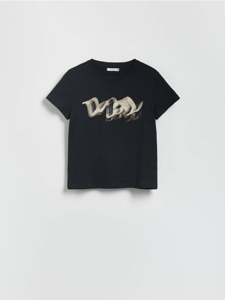 T-shirt z połyskującym nadrukiem – czarny