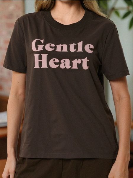 Sinsay – Bawełniana koszulka z napisem – brązowy –