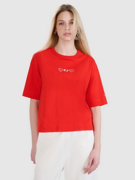 4F T-shirt oversize z nadrukiem damski – czerwony M