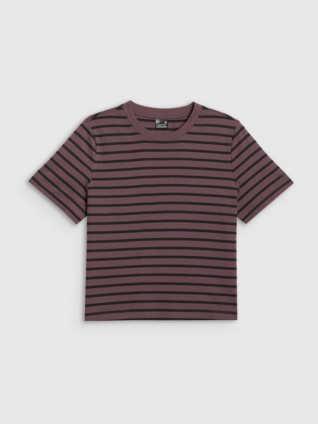 4F T-shirt regular gładki damski – brązowy XS