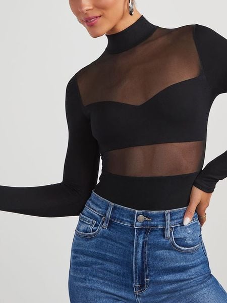 – kołnierz: stójka- krój: wąski- look: jednokolorowy- wykończenie: delikatnie prześwitujące