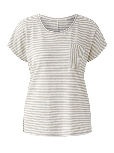 Oui Lniana koszulka w kolorze szarobrązowo-białym rozmiar: 34