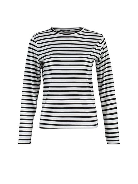 – z dodatkiem bawełny- dekolt: okrągły – krój: prosty – wzór: paski