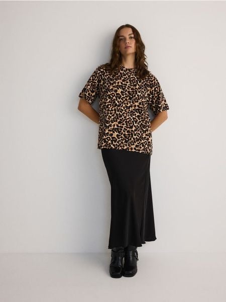 T-shirt o kroju oversize, wykonany z bawełnianej dzianiny ze zwierzęcym nadrukiem.
