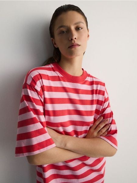 T-shirt o swobodnym fasonie, uszyty z bawełnianej dzianiny.
