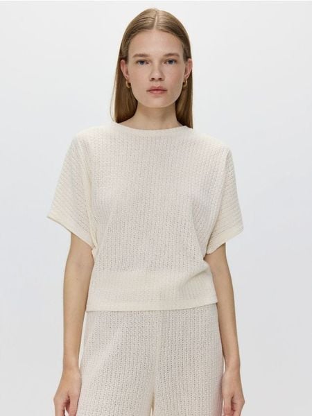 T-shirt ze strukturalnej dzianiny – złamana biel