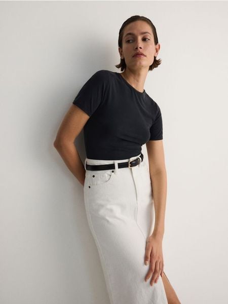 T-shirt o dopasowanym kroju, uszyty z miękkiej dzianiny z modalem.