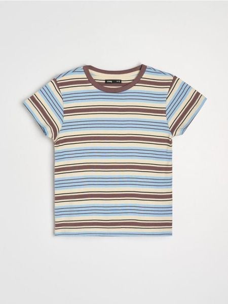 Sinsay – Bawełniana koszulka w paski – brązowy –