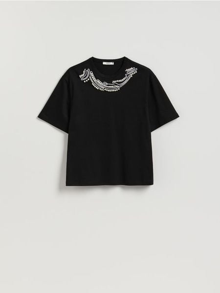 T-shirt z imitacją pereł – czarny