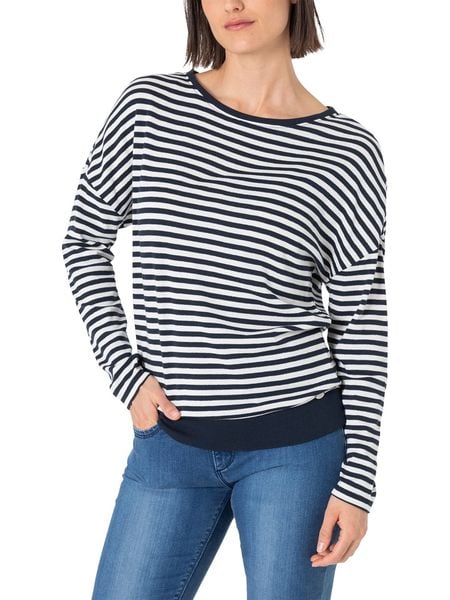 – dekolt: okrągły- ściągacz: dolny brzeg- krój: prosty- wzór: paski
