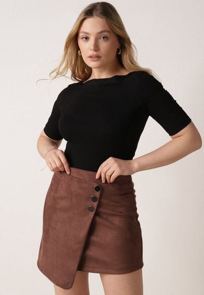 Czarny Wiskozowy T-shirt o Dopasowanym Kroju z Dekoltem w Łódkę Idahphaeia