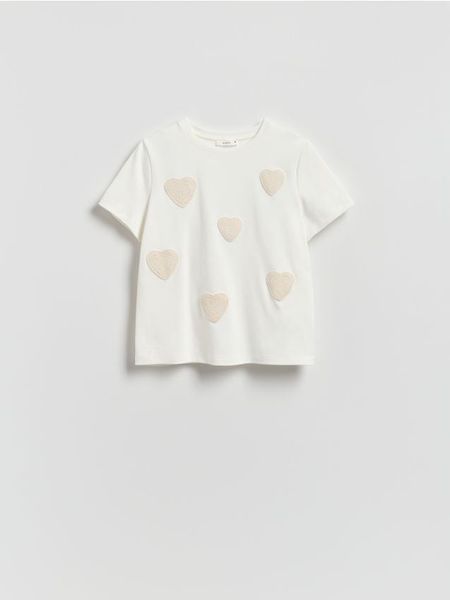 T-shirt z haftowaną aplikacją – złamana biel