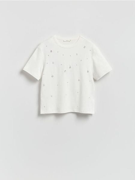 T-shirt z imitacją pereł – biały